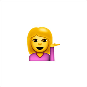 Sabe essa menina que aparentemente está dizendo “sou linda” ou “arrasei!”? Então. Na realidade, a figurinha está carregando uma bandeja imaginária (sim, rs) e foi criada para sinalizar que você está às ordens para ajudar alguém!